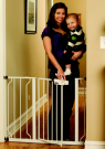 The Home Accents Extra Tall Gate boasts hardwood and steel construction for durability and strength, providing security you can rely on for those moments when you can't be within arm's reach of your child. It installs quick, requiring no tools with four pressure mounts that are each individually adjustable to provide a stable and secure fit. This gate is PVC free and has been certified by the Juvenile Products Manufacturers Association (JPMA). It also meets the safety standards set by the American Society for Testing and Materials (ASTM).